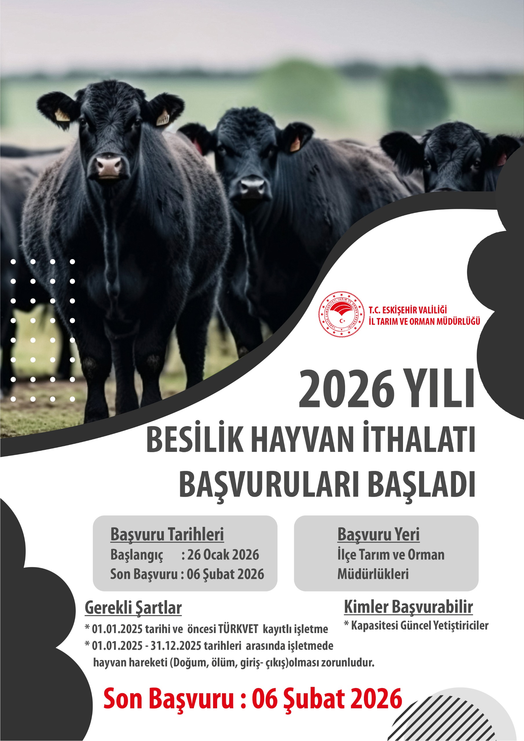 2026 YILI BESİLİK HAYVAN İTHALATI BAŞVURULARI BAŞLADI