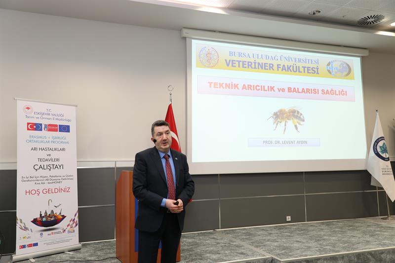 Bursa Uludağ Üniversitesi Veteriner Fakültesi Parazitoloji Anabilim Dalı Başkanı Prof. Dr. Levent Aydın ise çalıştay kapsamında verdiği eğitimde; Türkiye'de bal arıcılığının mevcut durumu, arıcılıkta verimliliği artıran teknolojik yenilikler, koloni yapısı ve özellikleri, arı hastalıklarının yönetimi, mevzuata uyum, başlıca arı hastalıkları (bakteriyel, paraziter ve viral), teşhis ve tedavi yöntemleri, arıcılık ekipmanları, koloni çöküş sendromu, oğul yönetimi ve arı sütü üretim teknikleri hakkında detaylı bilgiler paylaştı.