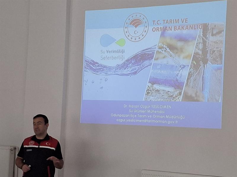 Bu çerçevede, Odunpazarı İlçe Tarım ve Orman Müdürlüğü teknik personeli Su Ürünleri Mühendisi Dr. Hasan Özgür Yeşilçimen tarafından 16-17 Şubat 2026 tarihlerinde iki ayrı Kur'an kursunda öğrencilere yönelik su verimliliği semineri düzenlenmiştir.